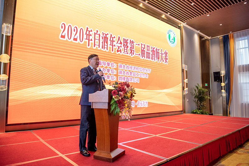 湖北省经济和信息化厅消费品工业处处长尹传铭、湖北省市场监督管理局食品安全协调处二级调研员罗志,江苏洋河酒厂股份有限公司原总工艺师、著名白酒专家、高级工程师谢玉球出席会议指导。劲牌有限公司副总裁刘源才、北京正一堂营销咨询有限公司总经理邵伶俐,五粮液股份有限公司副总经理、副总工程师赵东,以及湖北省白酒骨干企业、协会及行业专家和湖北省食品工业协会省白酒评委、省特邀评委,省内白酒企业技术骨干人员参加了本次年会。